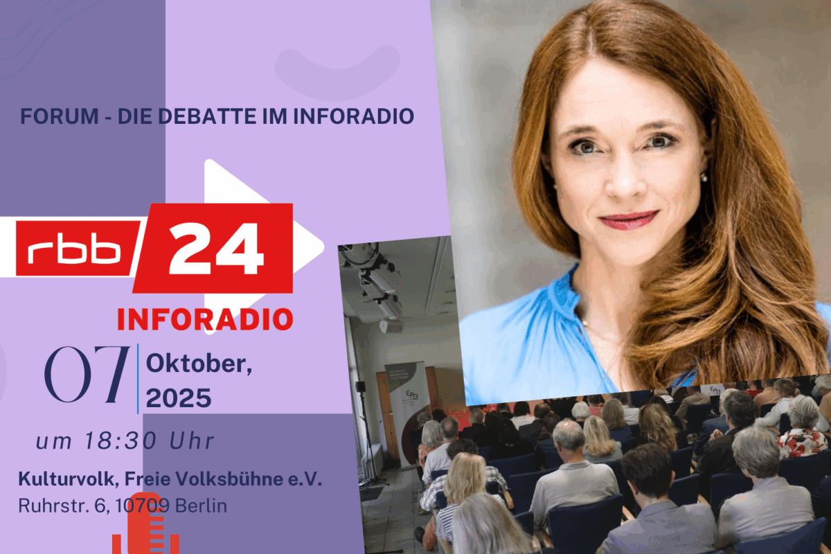 Die Veranstaltung wird im Rahmen der Sendereihe ,,Forum“ von rbb24 Inforadio aufgezeichnet.