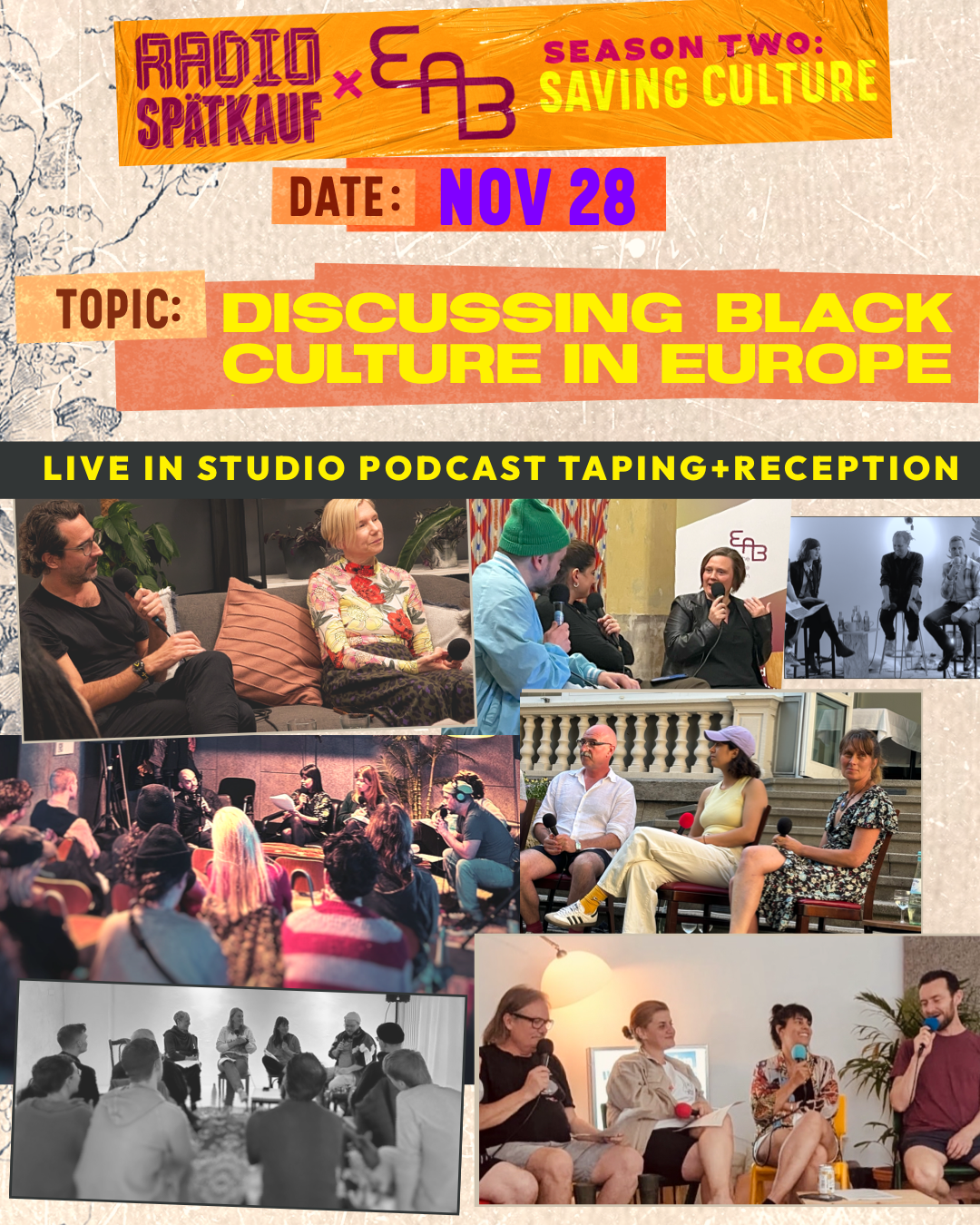 What is the perception and experience of Black culture in Europe? Is the participation, support and discussion of Black artists and creators changing in Germany or across Europe? A survey across disciplines, examining popular culture, institutional attitudes, and commercial interpretations. Join the live studio audience for this recording of the Radio Spaetkauf podcast, produced in cooperation with the European Academy Berlin.